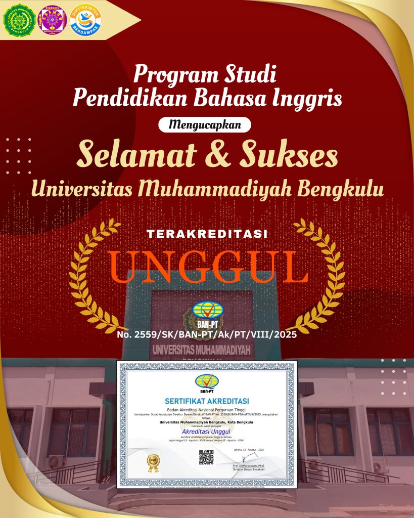 Bengkulu, August 2025 – Universitas Muhammadiyah Bengkulu (UM Bengkulu) has officially earned an Excellent accreditation rating from the National Accreditation Board for Higher Education (BAN-PT). This prestigious recognition is stated in the Decree of the Executive Board Director of BAN-PT No. 2559/SK/BAN-PT/Ak/PT/VIII/2025, declaring that UM Bengkulu has met all requirements for the highest accreditation status. The accreditation certificate is valid from August 13, 2025, until August 13, 2030.