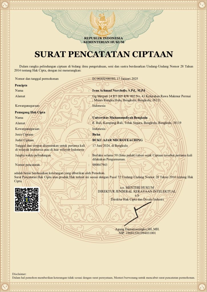 Judul Ciptaan : BUKU AJAR MICROTEACHING